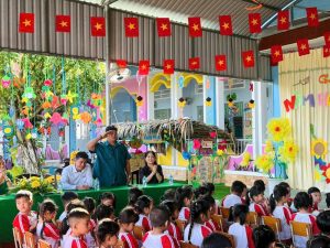 Ngày khai giảng năm học mới 2025 – 2026 đến trong một không khí đặc biệt. Tuy không nghe thấy tiếng trống khai trường vang lên trực tiếp giữa cờ hoa rực rỡ, nhưng buổi lễ khai giảng trực tuyến vẫn đem đến nhiều niềm vui, ý nghĩa, mỗi cán bộ, giáo viên, nhân viên trong nhà trường cảm nhận được sự gắn kết, yêu thương và tinh thần sẵn sàng cho một năm học mới. Những lời phát biểu ân cần, những bài hát, múa được truyền tải những thông điệp đầy đủ sự thiêng liêng của ngày hội toàn dân đưa trẻ đến trường.