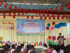 Ngày khai giảng năm học mới 2025 – 2026 đến trong một không khí đặc biệt. Tuy không nghe thấy tiếng trống khai trường vang lên trực tiếp giữa cờ hoa rực rỡ, nhưng buổi lễ khai giảng trực tuyến vẫn đem đến nhiều niềm vui, ý nghĩa, mỗi cán bộ, giáo viên, nhân viên trong nhà trường cảm nhận được sự gắn kết, yêu thương và tinh thần sẵn sàng cho một năm học mới. Những lời phát biểu ân cần, những bài hát, múa được truyền tải những thông điệp đầy đủ sự thiêng liêng của ngày hội toàn dân đưa trẻ đến trường.